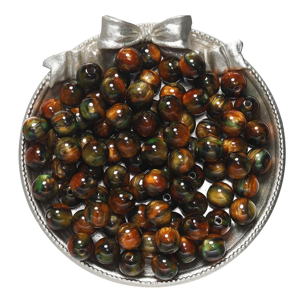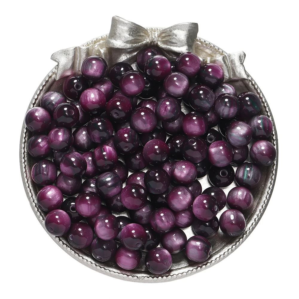 20-50pcs/lot Dark Color Mitation Cat Eye Round Resin Beads Bracelet Spacer Beads For DIY Charm Crafts Jewelry Making Findings