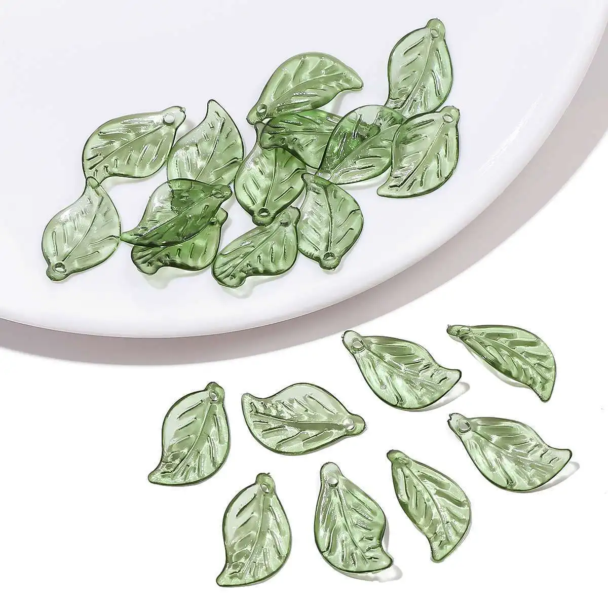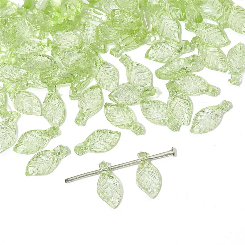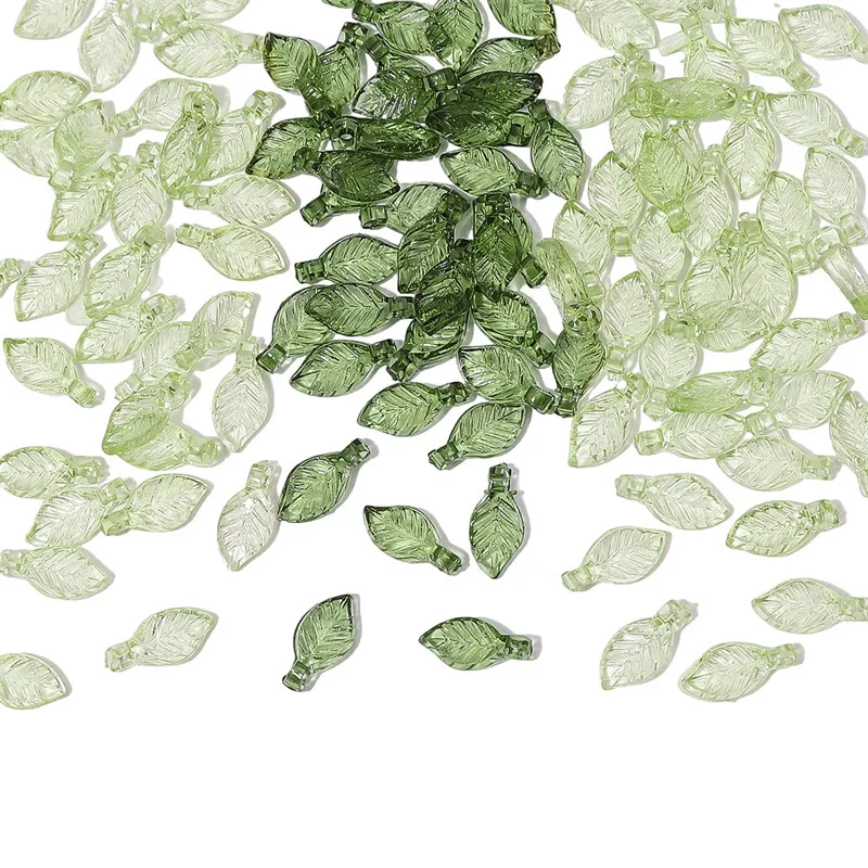50/100Pcs Acrylic Green Leaf Spacer Charms Beads For DIY Pendant Keychain Necklace Bracelet Jewelry Making Crafts Accessories