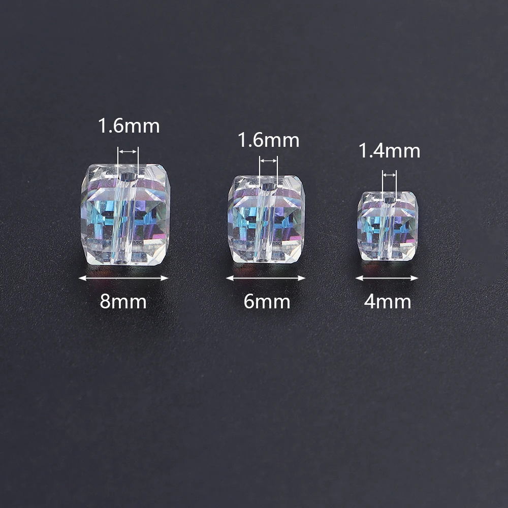 50pcs 4/6/8mm Exquisite Cube Crystal Glass Beads Square Loose Spacer Beads For Jewelry Making DIY Bracelet Necklace Accessories
