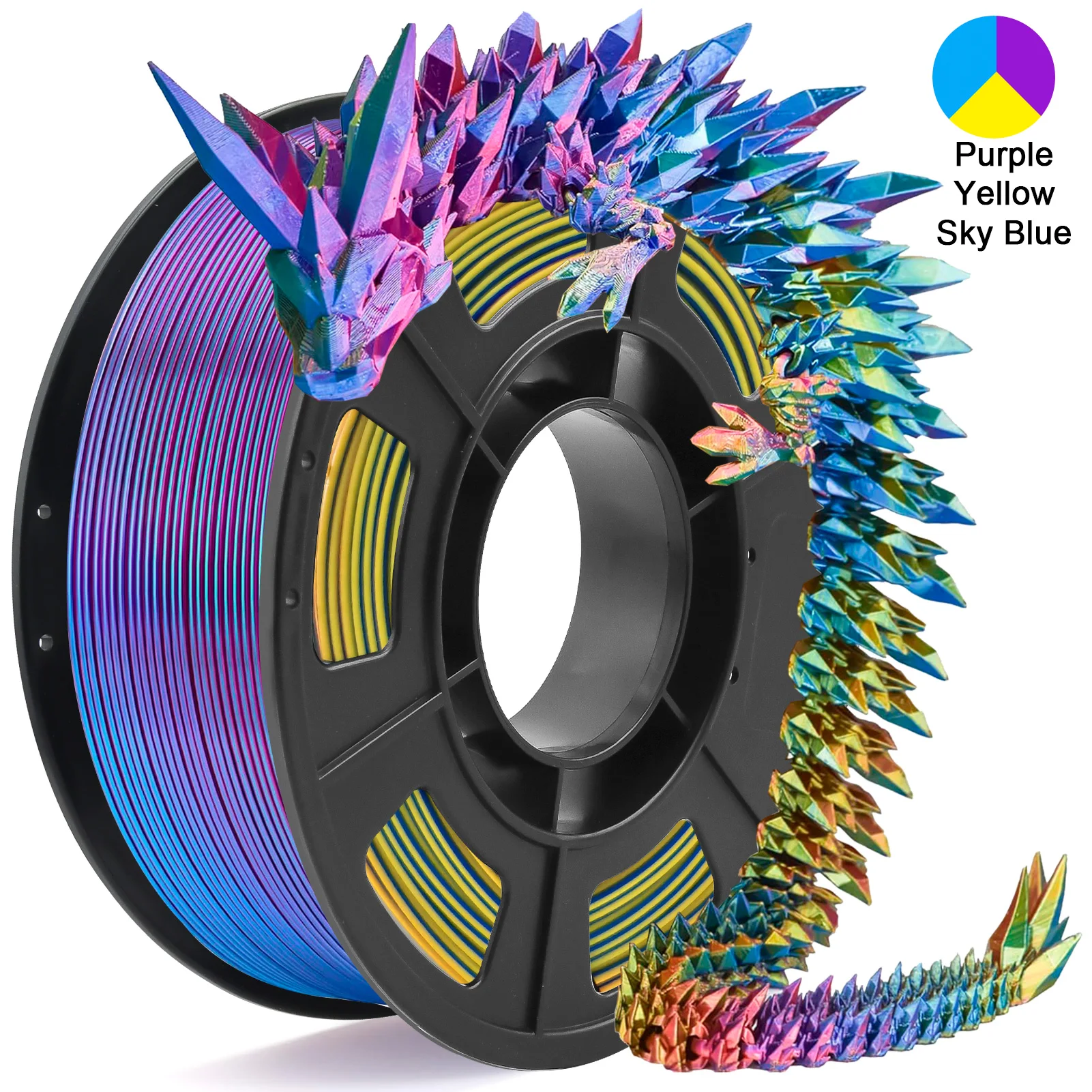Tricolor Silk PLA 3D Printer Filament, 1.75mm Multicolor 3D Printing Filament, Purple&Sky Blue&Yellow Filament, 250g (0.55lbs)